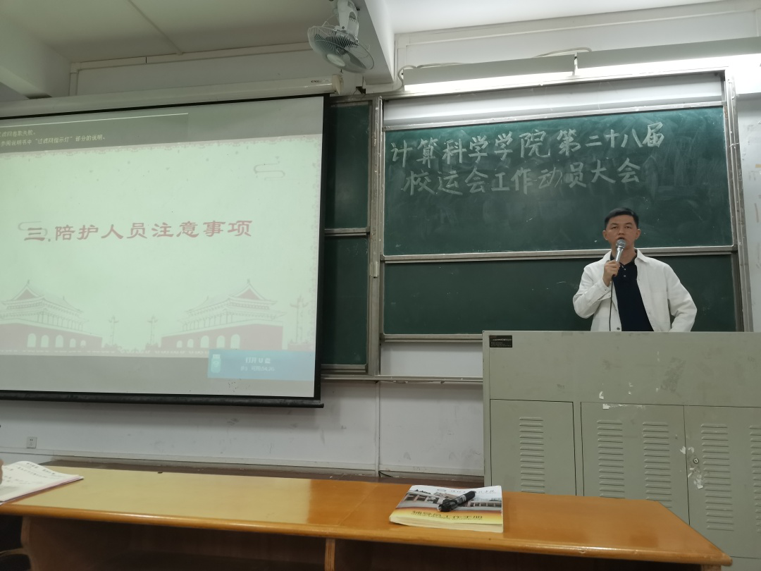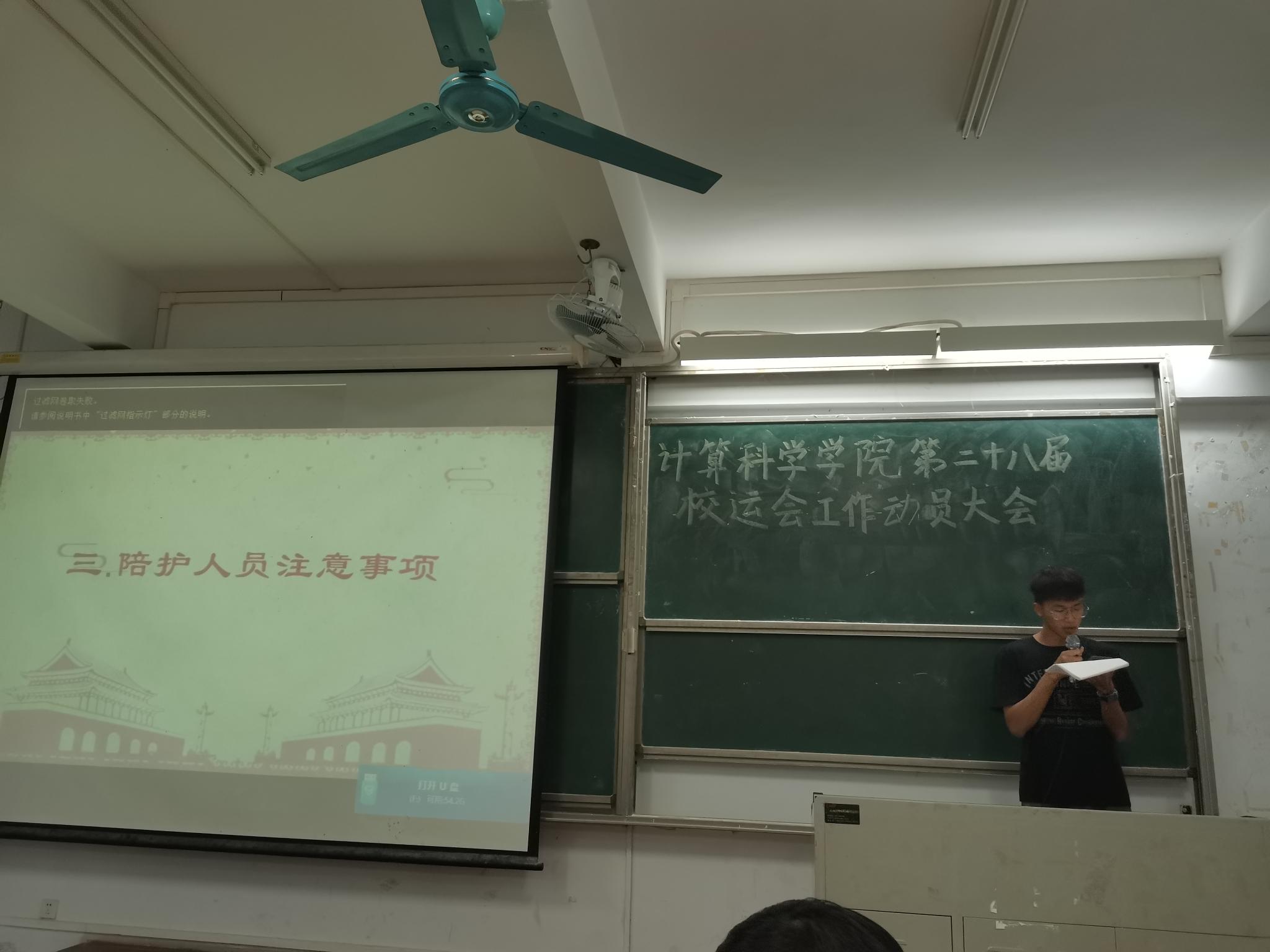 11月11日下午,计算科学学院于杨楼310室召开了第二十八届校运会工作动员大会,参加本次会议的人员有党总支副书记郭肖明、辅导员张素雅和廖蕃、以及我院团委、院青协、院学生会的工作人员。会议由廖蕃主持。