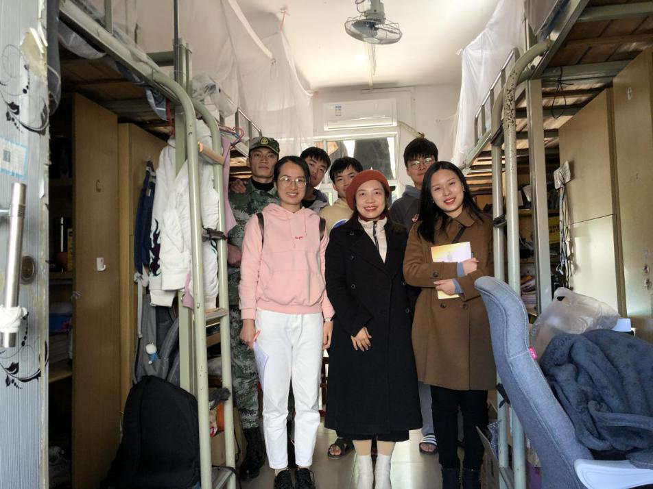 2021年1月13日下午,计算科学学院党总支副书记郭肖明、辅导员张素雅、吕依驰、廖蕃深入学生社区,开展寒假前消防安全检查工作,了解学生学习和生活状态。