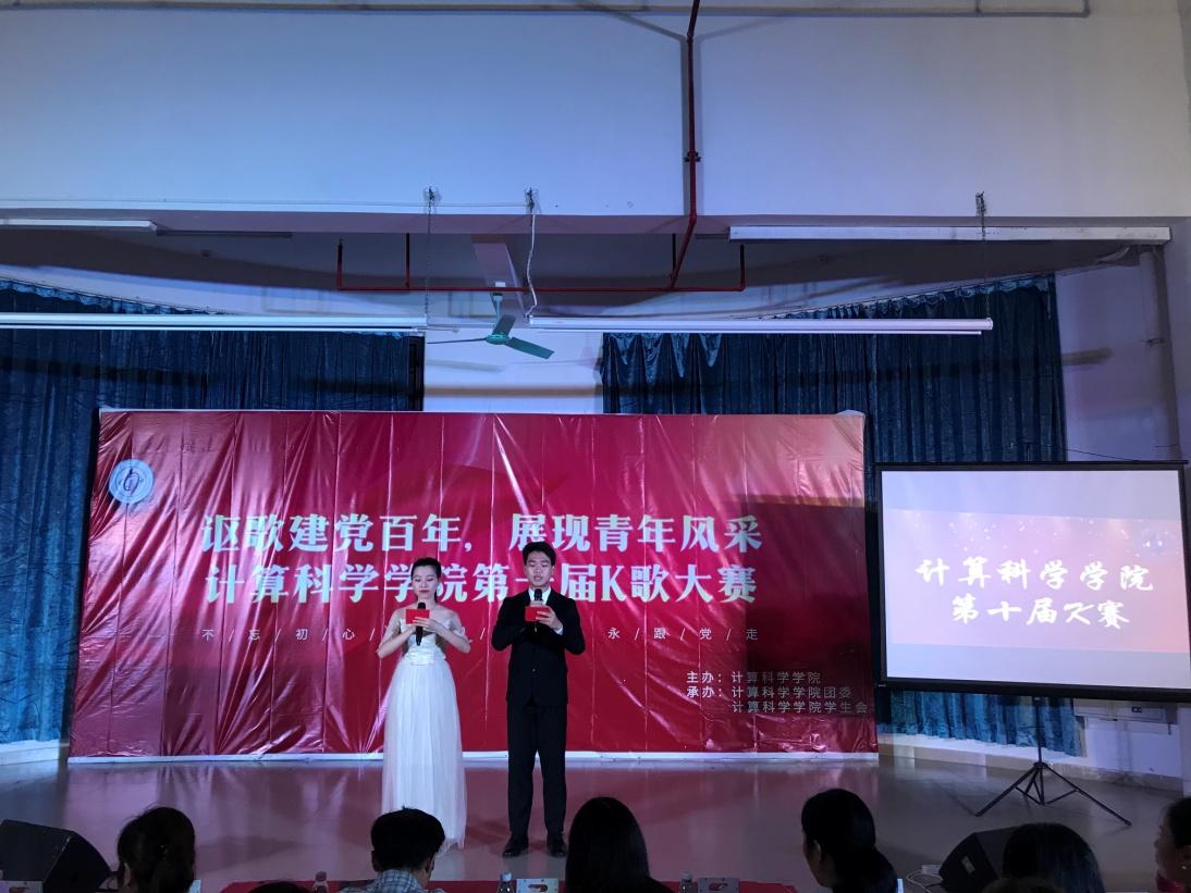 4月25日晚,计算科学院学院“讴歌建党百年,展现青年风采”第十届K歌大赛在D1小礼堂隆重举行。参加本次活动的有轻工食品学院党总支副书记李汉雄,计算科学学院党总支副书记郭肖明,计算科学学院办公室主任肖爱武,外国语学院专任课教师熊学军,城乡建设学院辅导员张小翠,计算科学学院信计201班主任李聘环、信计202班主任郑晓玲,辅导员张素雅、廖蕃、吕依驰,以及其他学院学生组织代表。