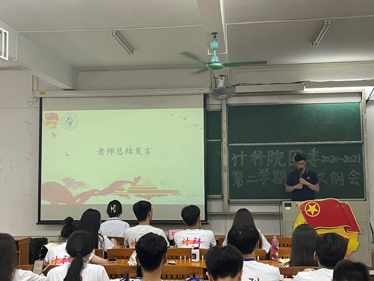 廖蕃对本次会议进行总结。他首先对院团委近期的工作表示肯定,感谢各个部门对学院发展付出的努力,鼓励各个部门在原有基础上进行创新,加强部门之间的合作交流,相互学习、共同成长。今后院团委要按照学校和学院的工作部署,继续开展好党史学习教育活动,加强青年团员的思想引领;各部门在工作上要善于总结经验教训、思考谋划工作,制订并落实好学习与工作规划。