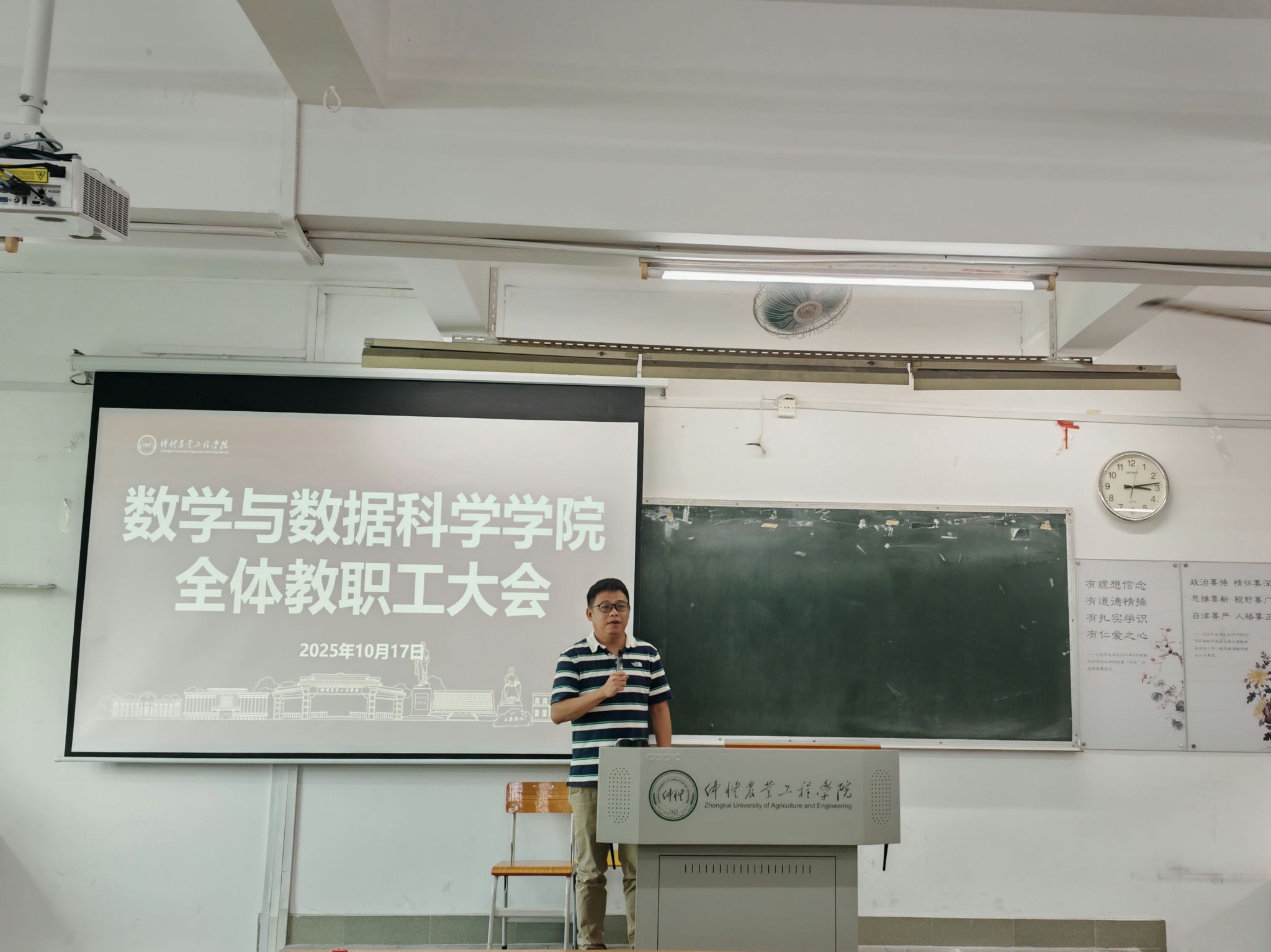 10月17日,数学与数据科学学院在海珠校区教学楼608召开全体教职工大会,部署本科教育教学审核评估重点工作,学院领导班子及全体教职工参加。
