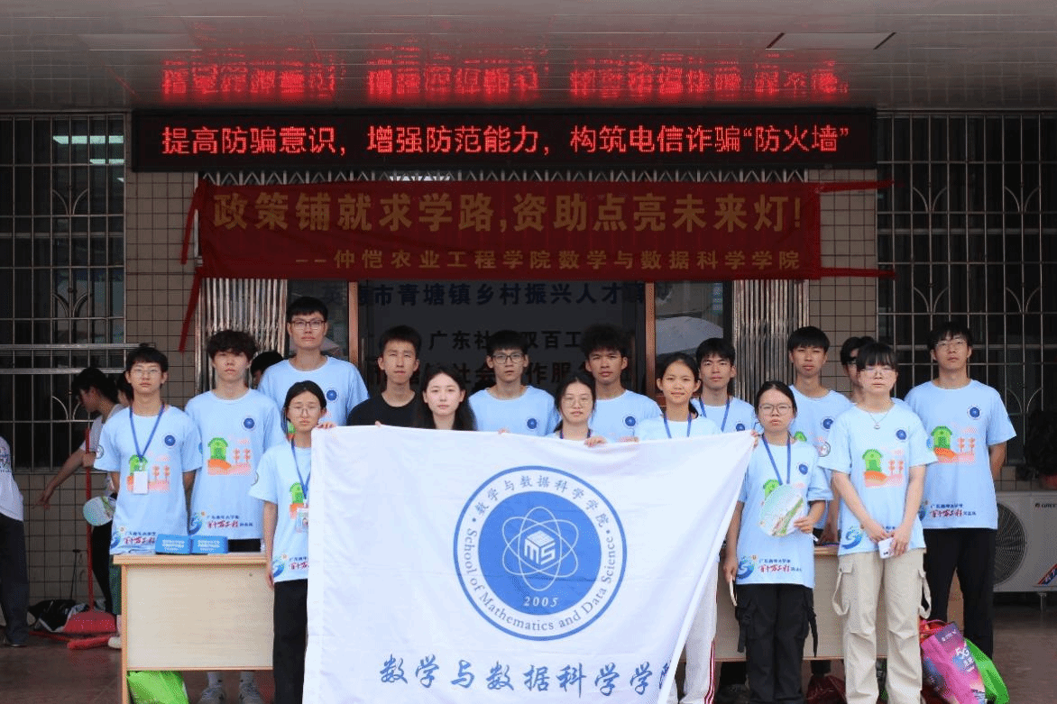 7月3日,仲恺农业工程学院数学与数据科学学院青年突击队到青塘镇新时代文明实践所和社会工作服务站,开展禁毒反诈普法宣讲与资助政策宣传行动。通过宣传构筑禁毒反诈防线,以暖心服务宣传学贷资助政策,为基层治理与民生服务注入青春智慧。