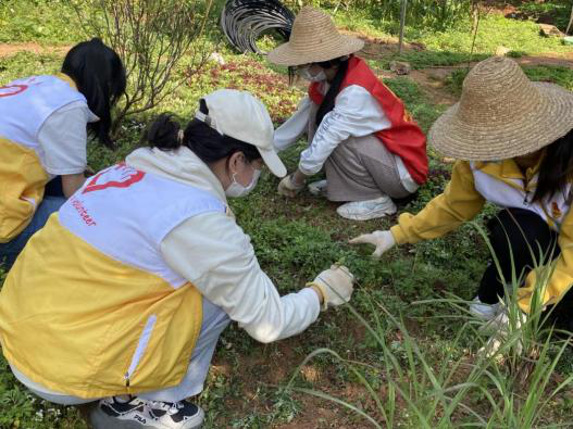 慧灵农场是广州首个以“农场疗法”概念,为智障人士提供更大进步可能的农场。希望用大自然新鲜的空气、轻松的气氛和开放的环境,帮助智障人士掌握生活和工作技能,重新投入社会。当天下午,学生党员与学生代表到达慧灵农场,按照分组开展志愿服务活动。有的同学负责清理片区的杂草和养殖网,有的同学负责砍伐山路边的杂树,有的同学负责将空闲池塘的泥土运到空地备用。经过近三小时的辛勤劳动,慧灵农场焕然一新。