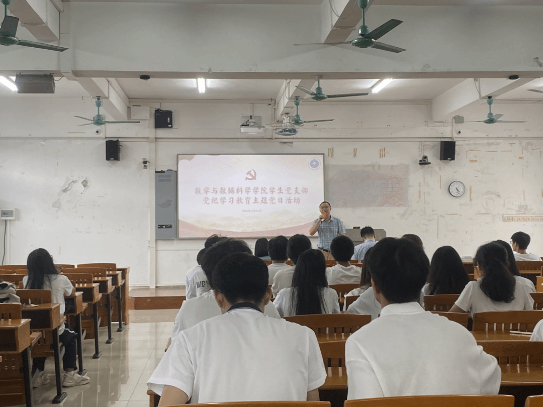 5月22日,数学与数据科学学院3个学生党支部在杨楼410以主题党日活动的形式,组织开展“以案明纪、以考促学”党纪学习教育。学院党委副书记,辅导员以及全体学生党员参加了活动。本次活动由辅导员廖蕃主持。